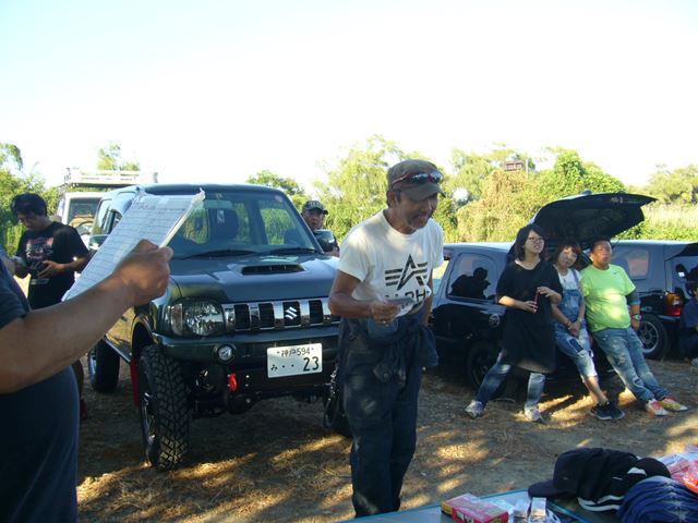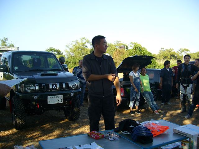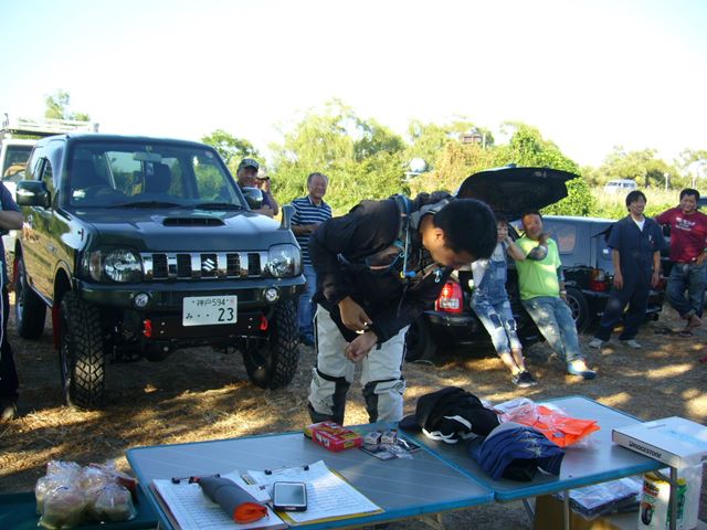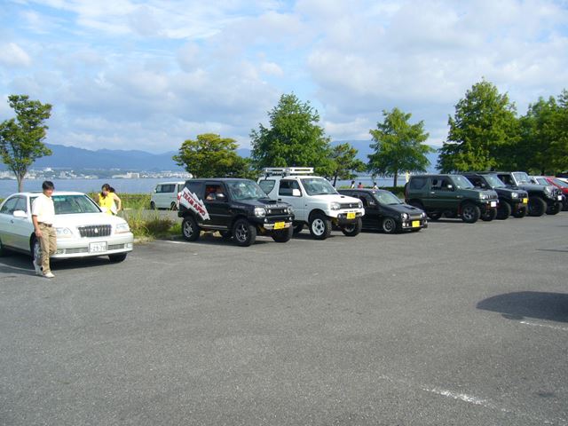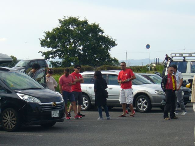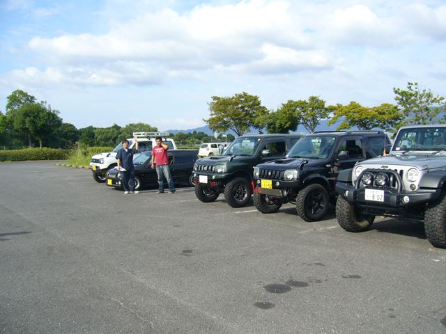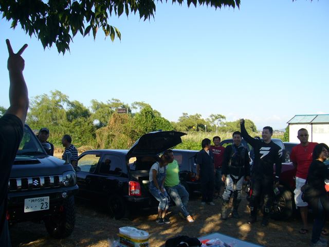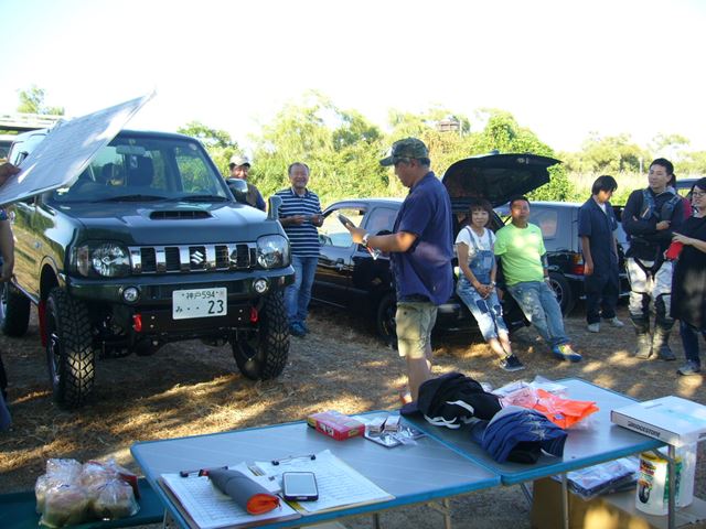 近隣の方、遠方の方、時間厳守で集まって頂きました。21台(内、バイクが4台)の参加車。昨日よりテントで宿泊された方もおられたようです。