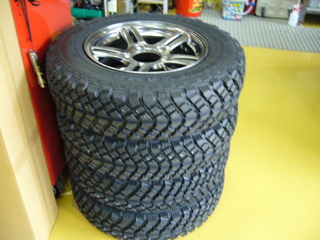③タイヤが来ました。ランドベンチャーのホイールにGEOLANDAR M/T 185/85R16を履かせました。