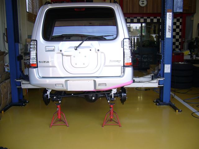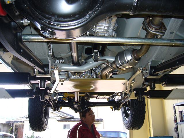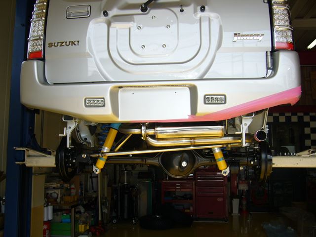 フロント・リヤ足回り交換済み、ターンオーバーマフラー&お助け中間パイプ交換済み、アクティブプレート&アームブラケットガード『頑丈くん』装着済み。着々と進んでおります。