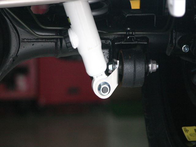 価格:8,200円(税別) スズキ・ジムニーJB23W用。(車体番号 JB23W-118185以降) Rショック交換のとき、ボルトのなめ・向き・角度に気を使うことなく『取付楽ちん』(別名) ショックの受け側の補強も兼ねている。※左右セット 2014年9月30日 by マットサービスファクトリー